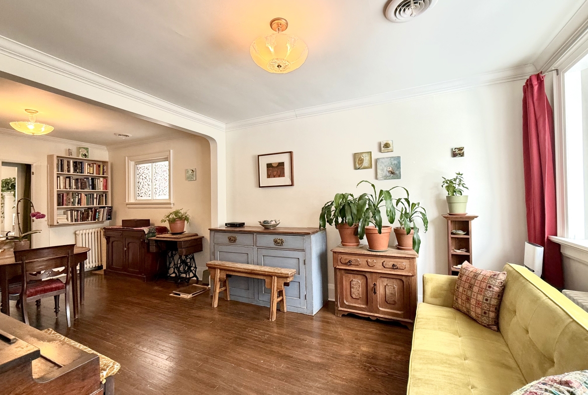 Charming and full of potential! Solid 2+2 bungalow with private driveway on a 30 x 110 lot as per survey attached. The flat lot, free of large trees, offers excellent future potential for expansion or building a larger home. Fantastic bones awaiting your personal touch. The house has been very well cared for. The main floor features a spacious living and dining area with beautiful hardwood and laminate flooring, convenient oversized front closet & a 4 piece bath. Bright kitchen complete with double sinks and some newer windows. Finished basement with separate side entrance, decent ceiling height, ceramic tile flooring, laundry room with sink. Additional highlights include updated wiring, a newer 100-amp electrical panel. Outside, enjoy beautiful landscaping in both the front and backyard. A property filled with opportunity – move in, invest, or build your dream home! The owner would like to stay on as a tenant paying fair market rent while you go through the development process but is also willing to leave.